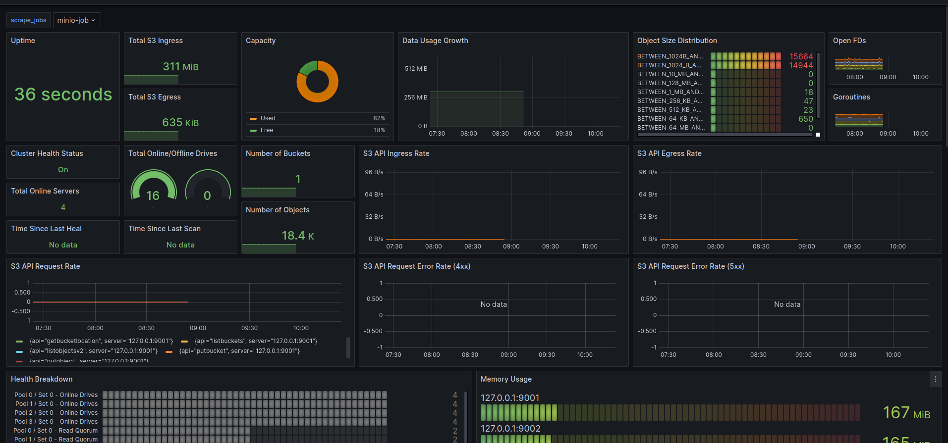 local disk metrics were polluting cluster metrics Please remove them instead of adding relevant ones. - batch job metrics were incorrectly kept at bucket metrics endpoint, move it to cluster metrics. - add tier metrics to cluster peer metrics from the node. - fix missing set level cluster health metrics